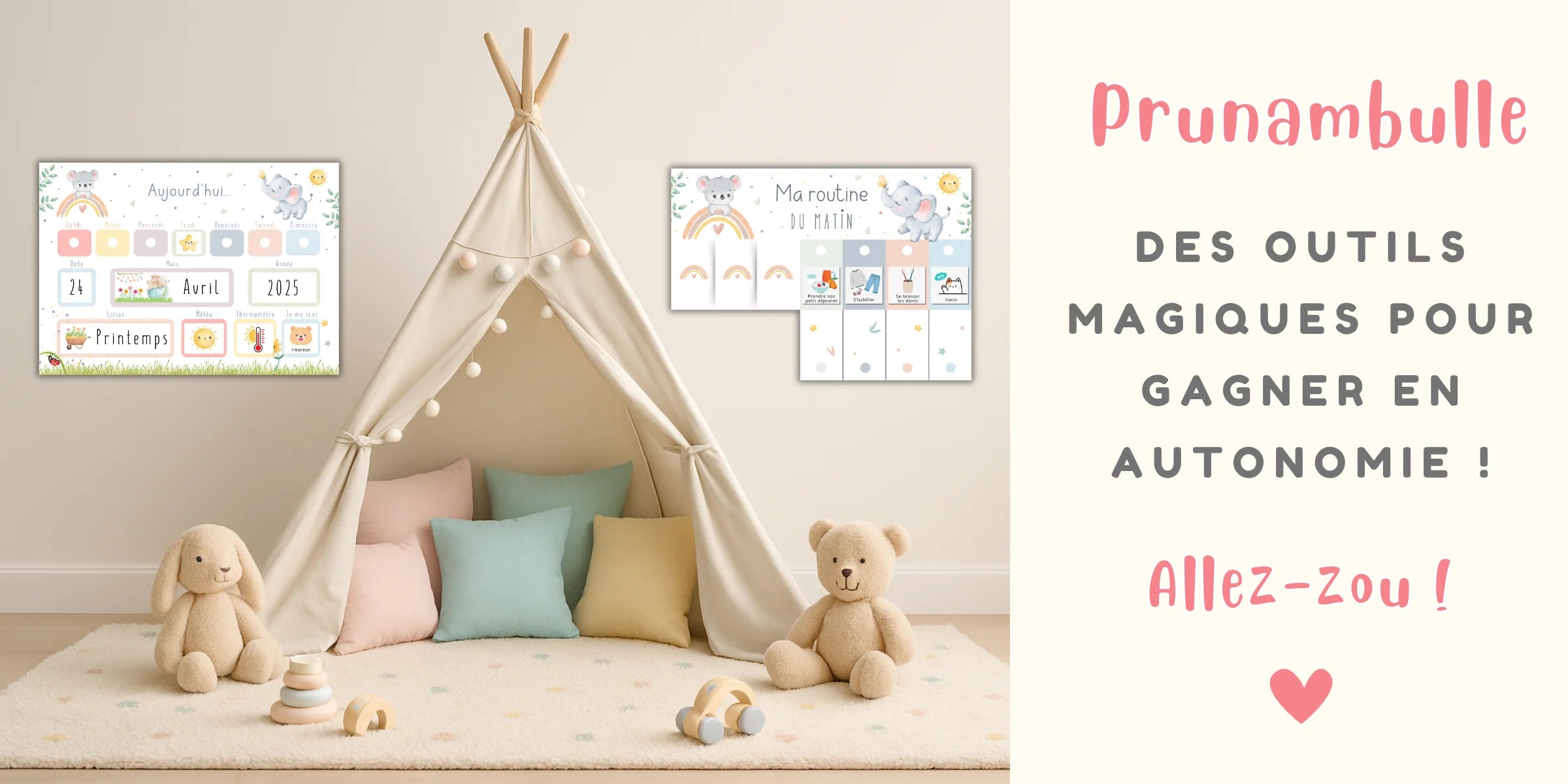 Tu cherches à faciliter l'apprentissage et l'organisation de ton enfant tout en rendant chaque moment fun et interactif ? Sur Prunambulle, tu trouveras des supports éducatifs téléchargeables et imprimables, adaptés à chaque étape de la croissance de ton enfant. Que ce soit pour les routines du matin et du soir, les tableaux du comportement, les semainiers, ou encore l'apprentissage des formes et des couleurs, nos outils sont conçus pour structurer son quotidien tout en favorisant son autonomie et son épanouissement.