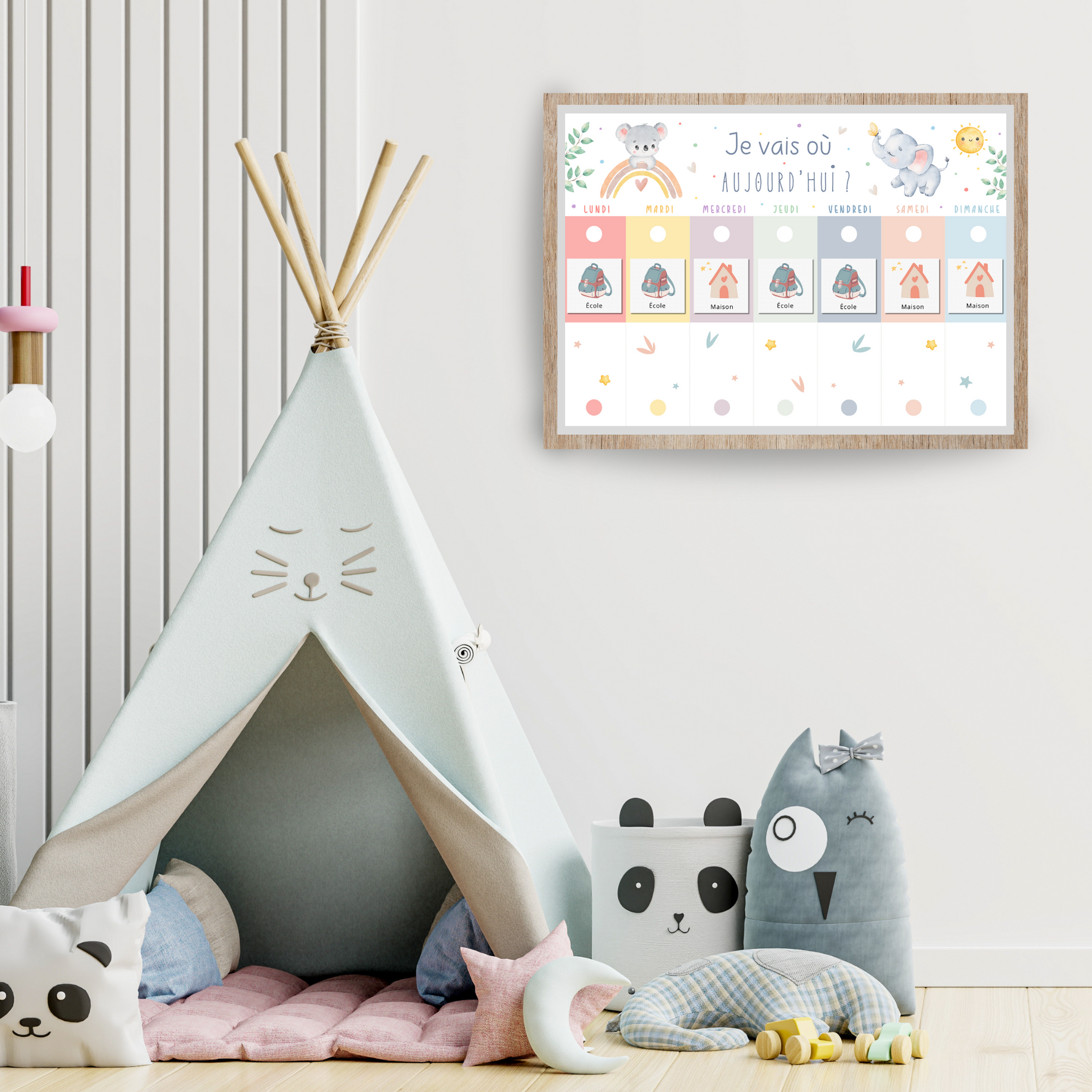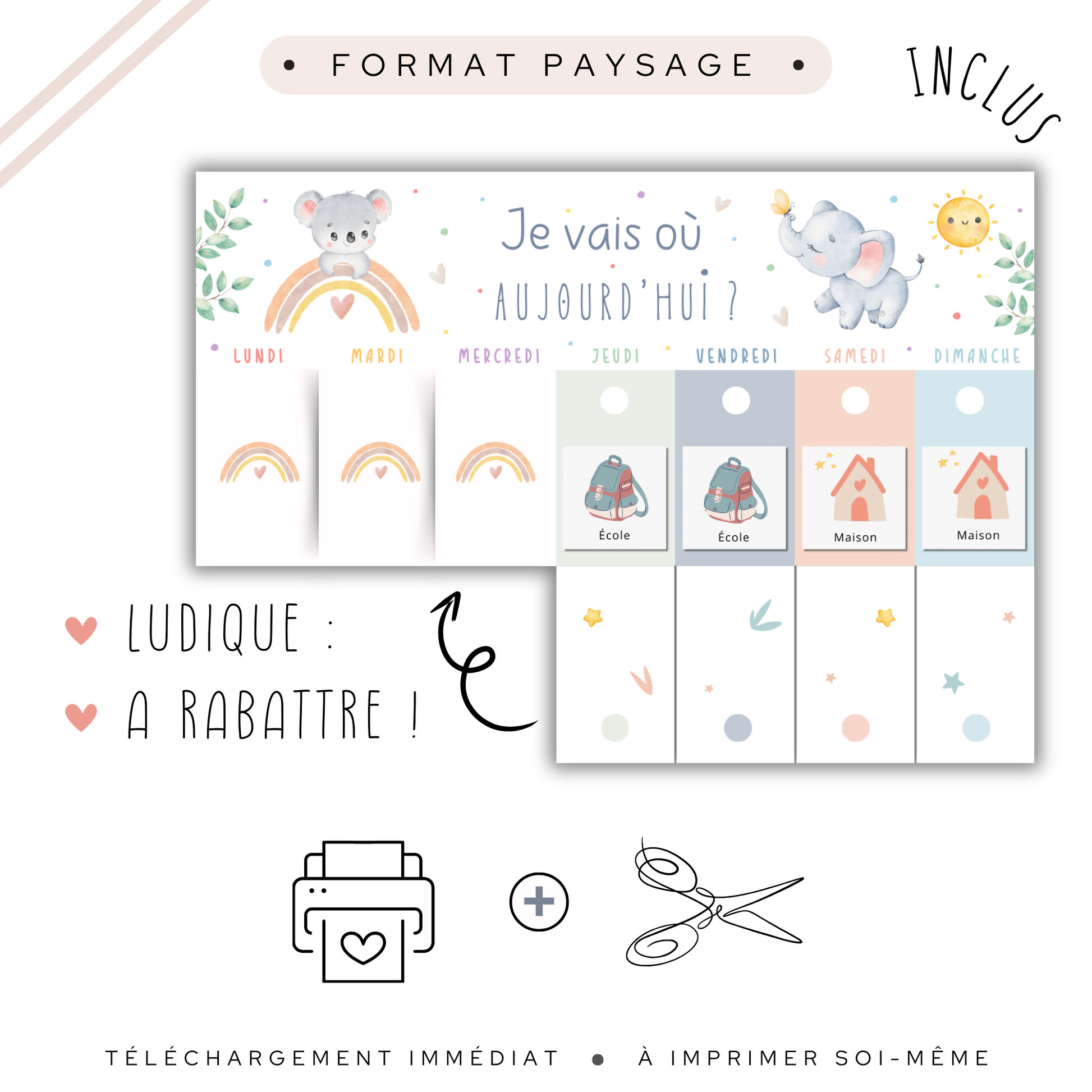 Kit de 2 tableaux de planning enfant – "Je vais ou aujourd'hui ?"