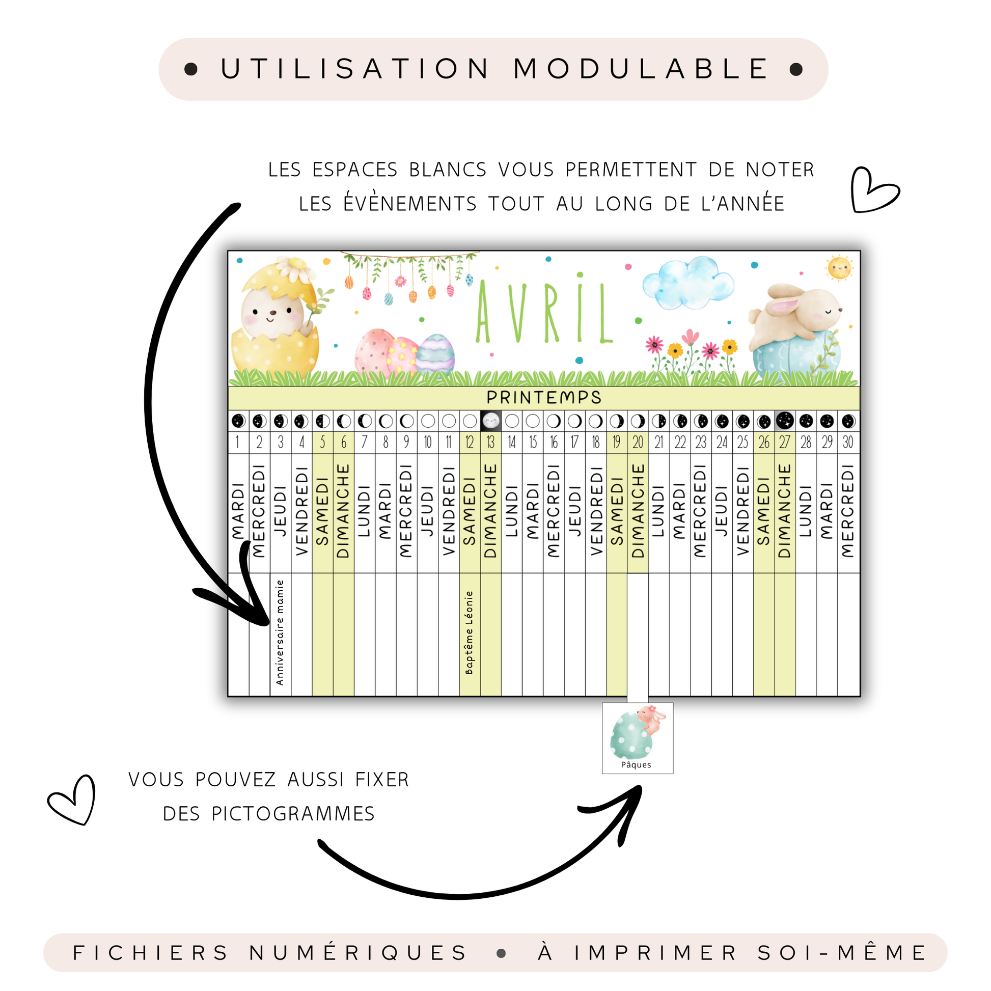 - Personnalisation : Utilise les encarts pour noter les événements familiaux et colle les vignettes aux dates correspondantes. Ton enfant pourra ainsi suivre le fil du temps et anticiper les moments spéciaux.