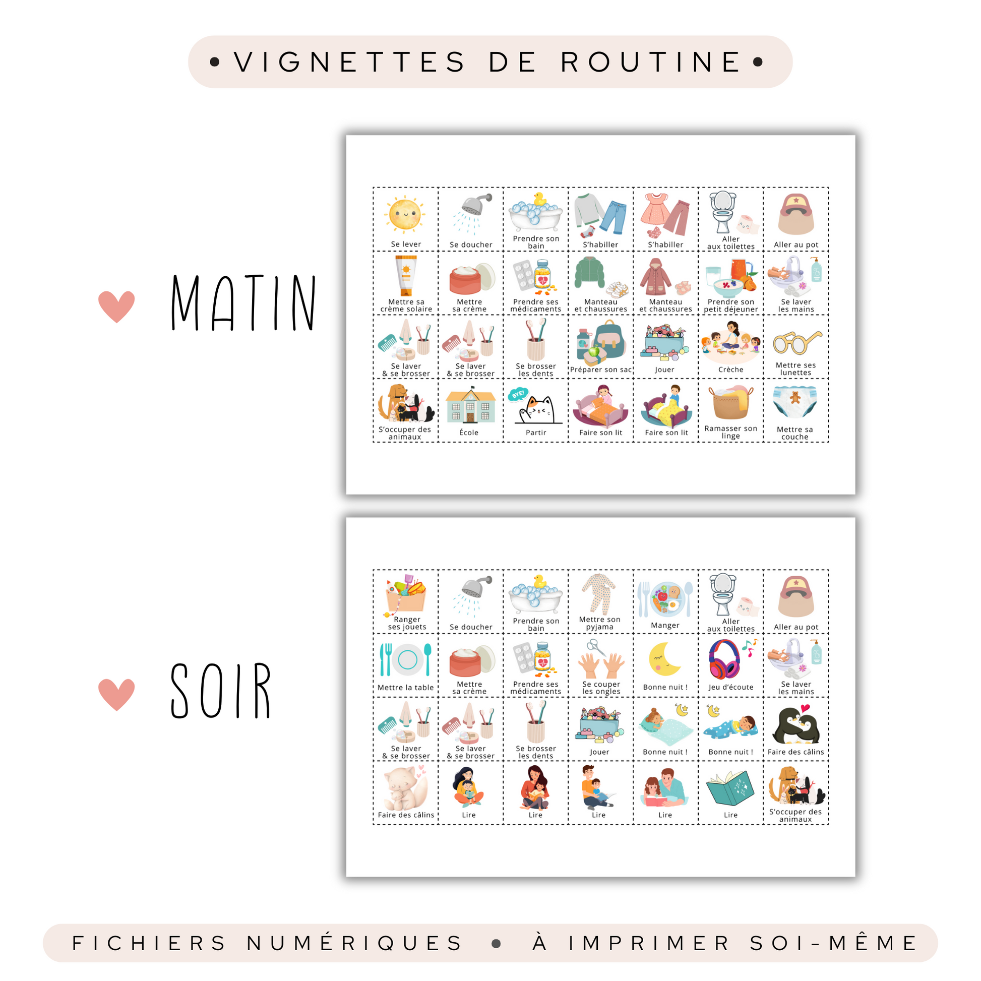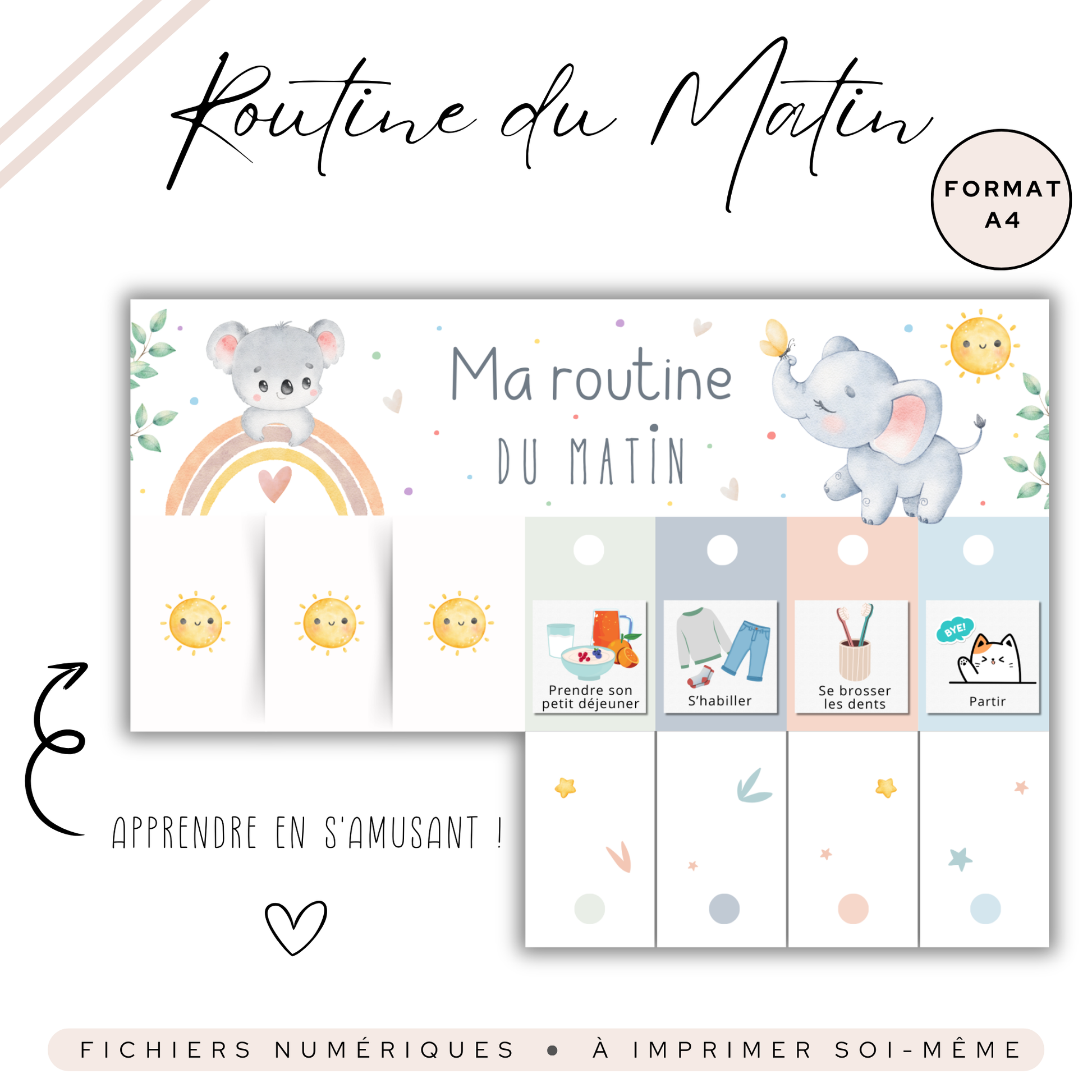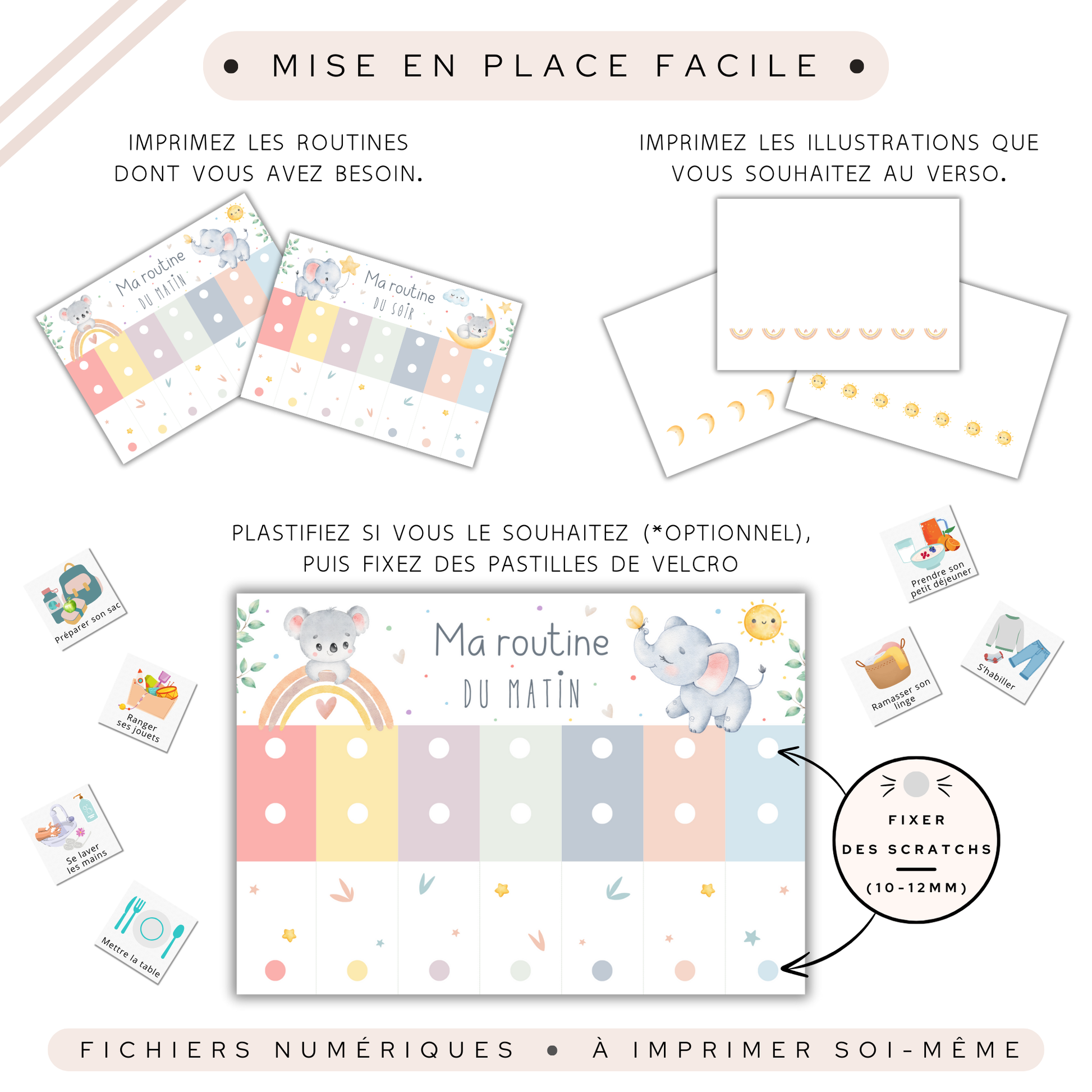 Un gain de temps précieux : Plus besoin de rappeler chaque étape à voix haute ! Les tableaux guident ton enfant en toute autonomie.