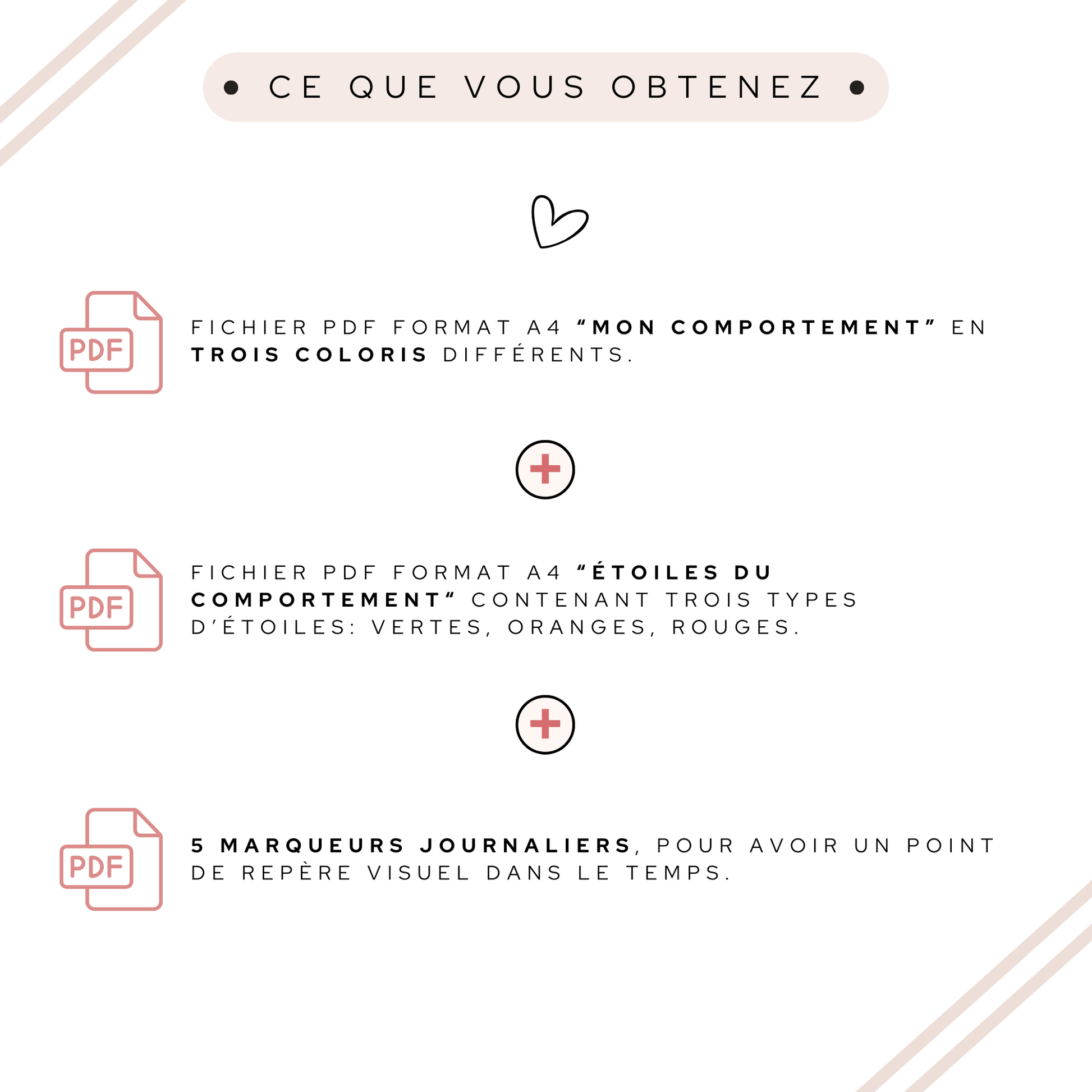 Ces pictogrammes permettent à ton enfant de visualiser ses efforts et de s’améliorer au fil des jours. Le principe est simple : une étoile collée à chaque moment de la journée (matin, après-midi, soir) pour évaluer la journée, tout en discutant ensemble de ce qui s’est bien passé et de ce qui peut changer. ✨